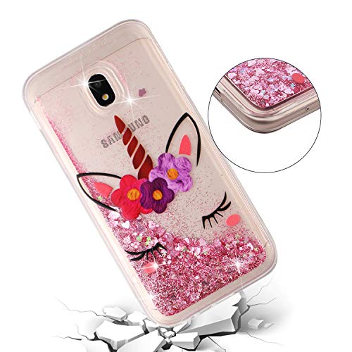 CUAgain Cover Compatibile per Samsung Galaxy J3 2017 Silicone Trasparente 3D con Disegni Antiurto Glitter Bling Case Liquido Transparent Acqua Gomma Cover Bumper Custodia Donna Uomo,Unicorno Rosa