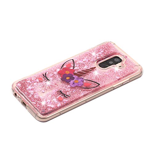 CUAgain Cover compatibile per Samsung Galaxy A6 Plus 2018 Silicone Trasparente 3D con Disegni Antiurto Glitter Bling Case Liquido Transparent Acqua Gomma Cover Bumper Custodia Donna Uomo,Unicorno rosa