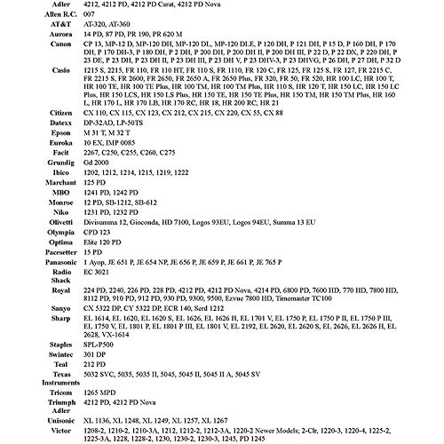 Compatibile con molti calcolatori popolari tra cui: CP 13, MP-12 D, MP-120 DH, MP-120 DL, MP-120 DLE, P 120 DH, P 121 DH, P 15 D, P 160 DH, P 170 DH-3, P 180. DH, P 2 DH, P 200 DH, P 200 DH II, P 200 DH III, P 22 D, P 22 DX, P 220 DH, P 23 DE, P 23 DH, P 23 DH II, P 23 DH III, P 23 DH V, P 23 DHV-3, P 23 DHVG, P 26 DH, P 27 DH, P 32 D