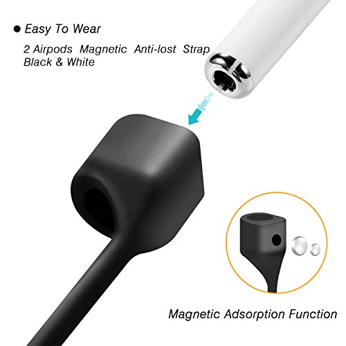 Cuauco [2 Pack] cinturino anti-perso ad adsorbimento magnetico compatibile per Apple Airpods 1&2 e Apple Airpods Pro Cordino in silicone protettivo ad adsorbimento per Apple Airpods(Bianco+Nero)