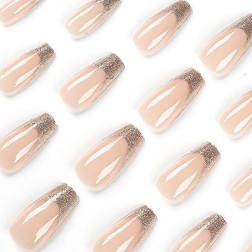 Cubahop Unghie finte lunghe a bara, 24 pezzi, con glitter rosa, per donne e ragazze (B)