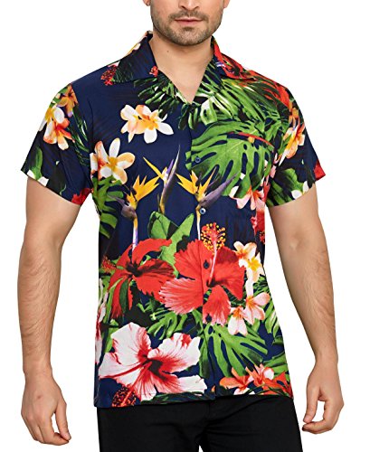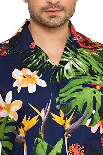 CLUB CUBANA Camicia da Uomo Hawaiana Floreale Classica Casual a Maniche Corte Slim Fit L