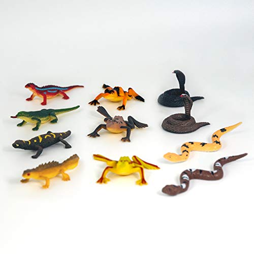 Cubitube - Rettili di Deluxebase. 11 Piccole Statuette di Rettili e Accessori per il Gioco. Tubo di plastica riutilizzabile per riporre le mini repliche di lucertole, rane e serpenti.