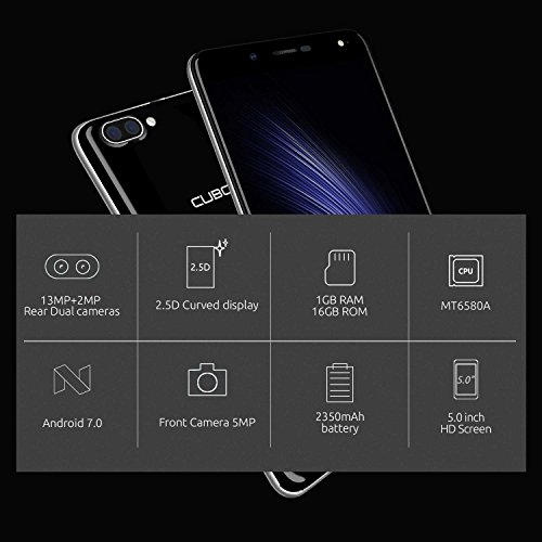 CUBOT Rainbow 2 Android 7.0 OS Smartphone con 1280 * 720 Pixel HD Schermo 12,7 cm MTK6580 A Quad Core 1.3 GHz 1 GB RAM 16 GB Rom Cellulare Dual Camera
