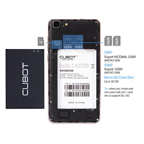 Smartphone dual sim 3.3G, supporta anche 2 g (GSM), 3 g:850/900/2100 MHz. Compatibile con molti supporti come Vodafone, O2, EE, T-mobile, Three, giffgaff, Lebara, CTExcelbiz, Lyca, Talk home Mobile.Due slot micro SIM consentono di combinare sia lavoro che uso personale su lo stesso ricevitore o utilizzare una sim nel Regno Unito e l'altra su una rete locale da servizi di tariffa locale estera.Due slot SIM sono per schede micro sim, un altro slot è per scheda micro SD fino a 32 GB di memoria estesa.