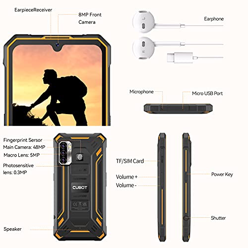 CUBOT Rugged Smartphone kingkong5 senza contratto, telefono Android 11 IP68, display HD+ da 6,1‘', batteria da 5000 mAh, fotocamera 48 MP, doppia SIM 4G, 4 GB/32 GB (256 GB espandibile)