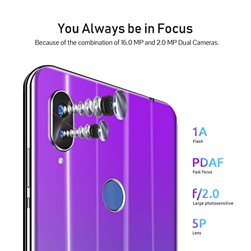 【Dietro questo incredibile schermo, v'è una straordinaria esperienza fotografica】 Lo schermo 5.93 pollici 18:9 con una risoluzione di 2160x1080 (FHD +) PPI 407 e la Dual Camera 16MP / 2MP con flash led PDAF sono l