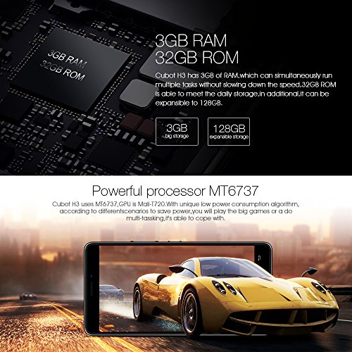 Cubot H3 4G Smartphone Android 7.0 Economico in Offerta 5.0 Pollici 1.3 GHz Quad Core 3GB RAM 32GB ROM 6000mAh Batteria Impronte Digitale 13.0MP + 0.3MP Fotocamera GPS Wifi Bluetooth 4.0
