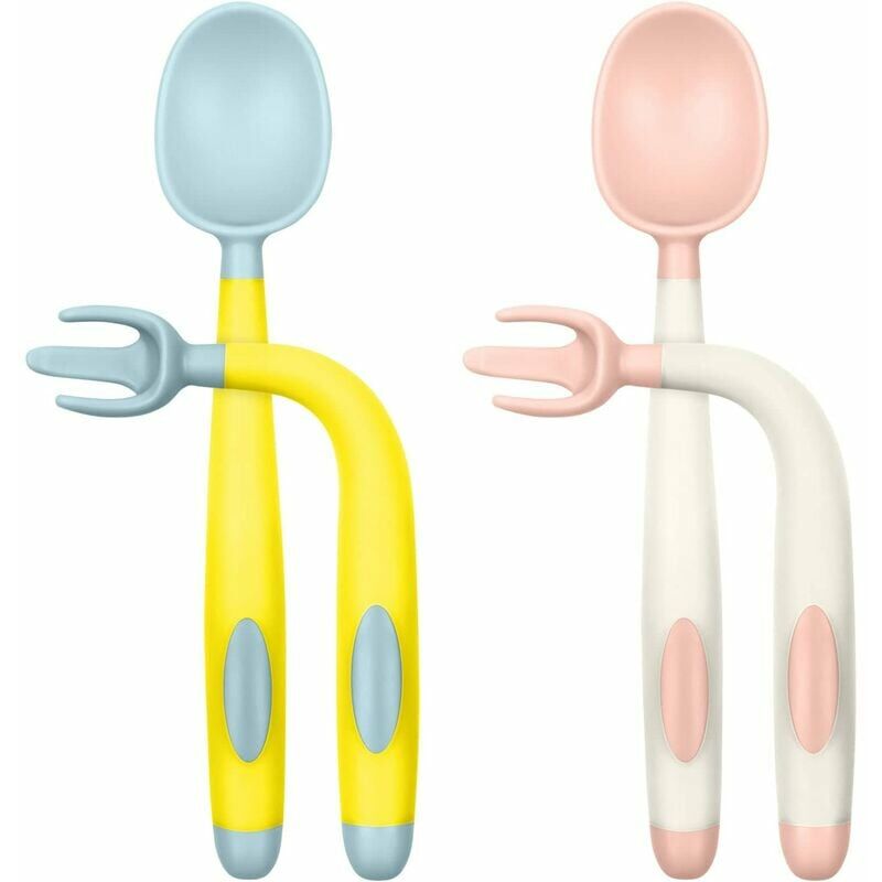 Manico flessibile - Il manico ergonomico di questo set di cucchiaio e forchetta attorcigliato può facilmente aiutare il tuo bambino a mangiare, il cucchiaio e la forchetta unici hanno un manico flessibile che può essere piegato a 360 gradi secondo necessità per soddisfare le esigenze 【MATERIALE SICURO】 I nostri prodotti sono realizzati in materiale PP+TPE per uso alimentare, le punte di cucchiai e forchette sono arrotondate e morbide senza bordi taglienti. Il cucchiaio è realizzato in puro materiale PP, senza BPA, sicuro e insapore, senza lattice, senza piombo e senza ftalati. Il materiale morbido protegge le gengive e i denti sensibili del tuo bambino. È sicuro che i bambini mangino da soli 【FOOD SAFE】 Questo cucchiaio è diverso dagli altri cucchiai per bambini a causa del filo d'acciaio nel manico in TPE del nostro cucchiaio. Il trainer è molto morbido, facile da impugnare e può essere piegato in diverse angolazioni, il che è comodo per nutrire il bambino e fargli imparare a