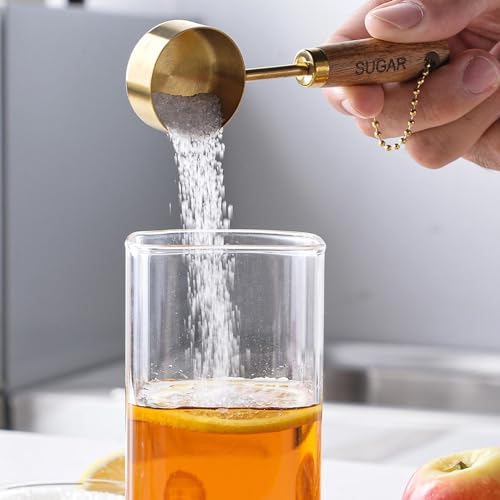 ↩Aggiunta elegante: migliora lo stile della tua cucina con il nostro kit di cucchiai dosatori caratterizzato da una lussuosa finitura dorata. Il suo aspetto esclusivo e bello si abbina a tutti gli stili di arredamento della cucina. La parte del misurino mostra una scintillante lucentezza dorata che si aggiunge al suo design elegante.