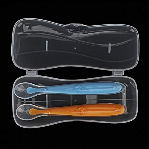 2Pcs Cucchiai per neonati Cucchiaio in silicone Cucchiaio per l'alimentazione del bambino Cucchiai con punta morbida con scatola portaoggetti per bambini di età superiore a 4 mesi(Giallo e blu)