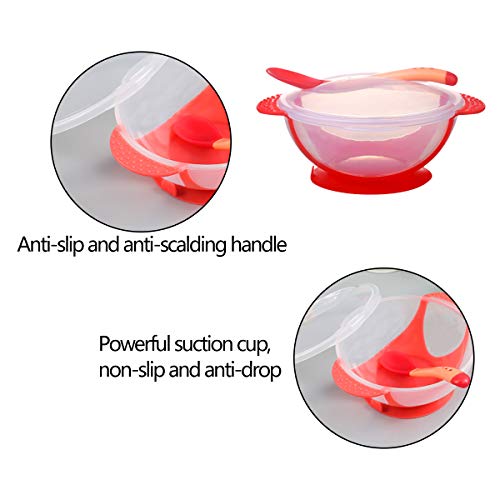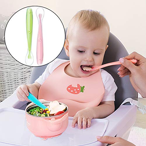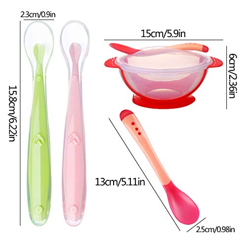 Cucchiaino per Neonati,Saijer Ciotola per Ventosa in Silicone con Coperchio e Cucchiaio Morbido con Testina Termica,Adatto per il Pasto quotidiano del Bambino (4 Pezzi)