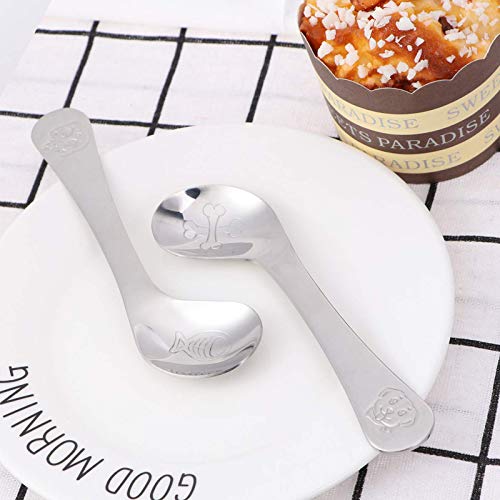 Cucchiaino Silicone Neonato Cucchiaino Svezzamento Curvo Cucchiaio Bambini Acciaio Inox Cucchiaio per Bebè Acciaio Inox Bebè Svezzamento Cucchiaio Cucchiaini per Neonati in Acciaio Inossidabile
