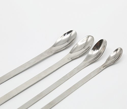 Cucchiaio in acciaio inox, micro dosatore per campioni, reagenti, laboratorio. Cucchiaio con spatola, per uso medicale e farmaceutico, di piccole dimensioni. 2 cucchiai da 22 cm e 2 cucchiai da 16 cm