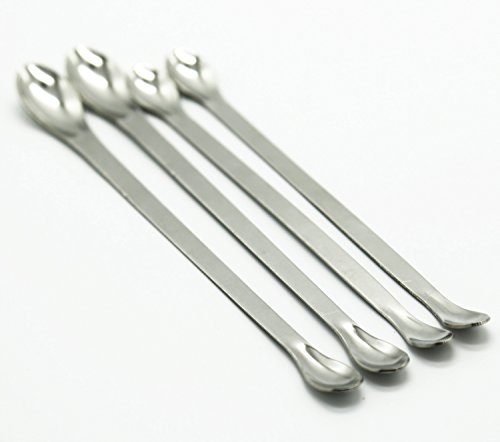 Cucchiaio in acciaio inox, micro dosatore per campioni, reagenti, laboratorio. Cucchiaio con spatola, per uso medicale e farmaceutico, di piccole dimensioni. 2 cucchiai da 22 cm e 2 cucchiai da 20 cm