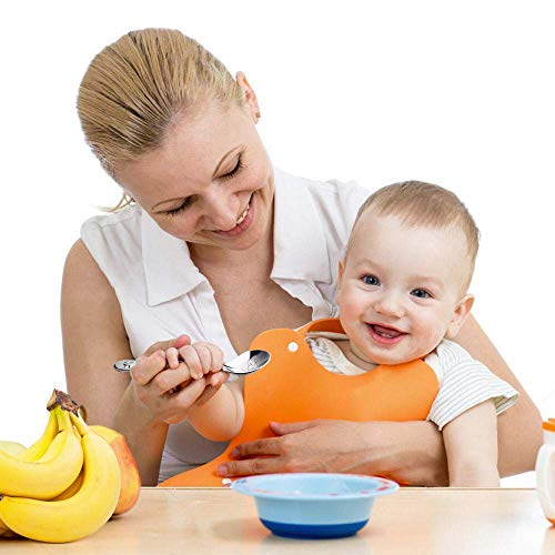 Cucchiaio curvo per Bebè, Posate per Bambini, Acciaio Inox Bebè Svezzamento Apprendimento Cucchiaio, Curvo Cucchiaio Bambini, Angolato Stoviglie per bambini sicure(2 Pezzo)