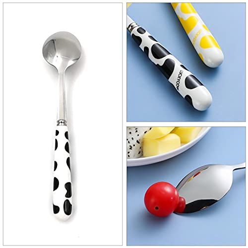 Cucchiaio Dessert In Acciaio Inossidabile Con Manico Ceramica Acciaio Inox Maniglia In Ceramica Cucchiaino Cucchiaino In Acciaio Inox Con Manico In Ceramica E Motivo Mucca,Cucchiaio Dessert(4 Pc)
