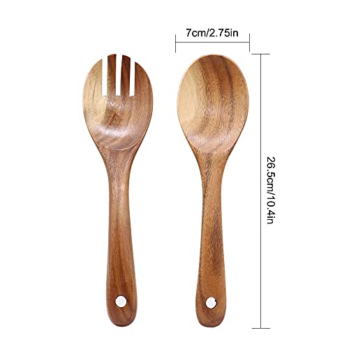【Materiale di Alta Qualità e Durevole】: Le posate per insalata in legno sono realizzate in resistente legno di acacia, che è forte e infrangibile, ha una trama stretta e colori forti, che lo rendono un materiale ideale per cucchiai e forchette