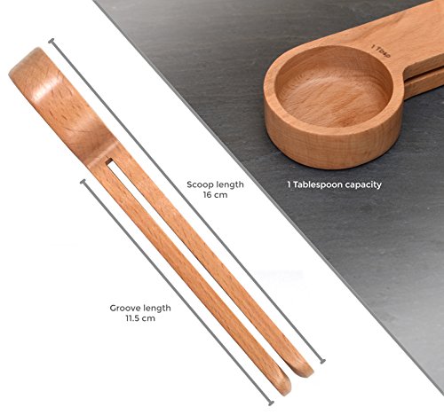 Cucchiaio- Clip in legno per busta - 1 cucchiaio a misurino in legno massiccio di faggio. sigillo per buste di espresso. adatto anche per chicchi macinati, chicchi di caffè e tè sfuso By The Urban
