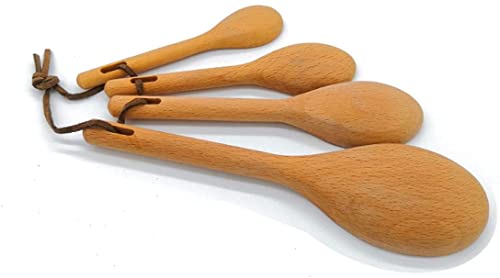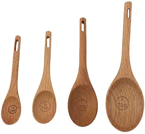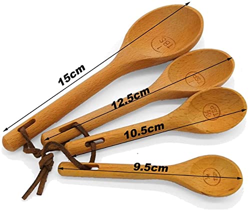 Cucchiaio di Legno, Set di 4 Cucchiai Dosatori in Legno di Daggio con Incisione, per Ingredienti Secchi e Liquidi, Riutilizzabili ed Ecologici