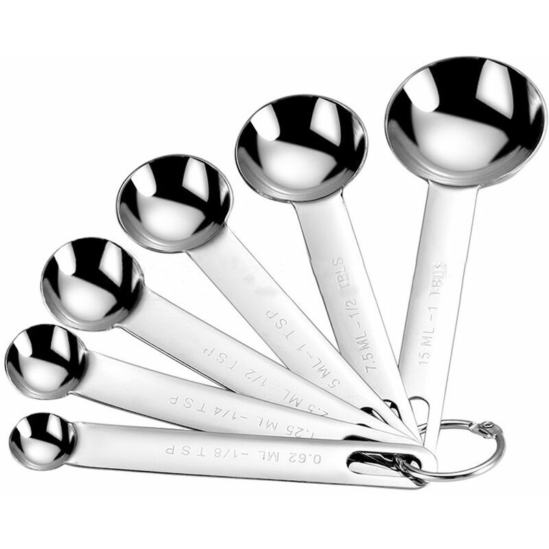 1. Gli innovativi cucchiai rotondi si adattano bene a barattoli di condimento e altri piccoli contenitori. < br / > 2. Attaccato con un anello, può tenere insieme tutti i cucchiai durante la cottura o la cottura. < br / > 3. Misurino graduato e righello. < br / > 4. Questi misurini sono perfetti per la casalinga, i fornai e lo chef per misurare generi alimentari, sale, zucchero e altri ingredienti. < br / > 5. L'anello in acciaio inossidabile tiene insieme il set, può essere rimosso per la pulizia o l'uso.