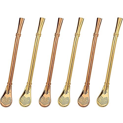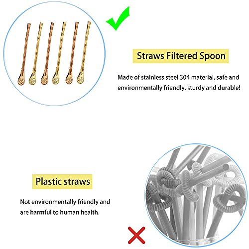 Cucchiaio di Paglia Filtro di Acciaio Inossidabile, 6PCS Cucchiaio Cannuccia in Acciaio Inox, Cannucce di Riutilizzabili Cannucce di Filtro Metallo, Usate per Filtrare i Residui, Tè Sfuso, Caffè