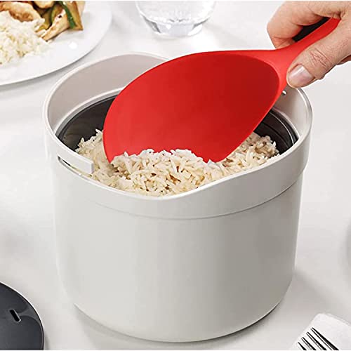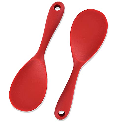 Cucchiaio di Riso in Silicone Acciaio Inossidabile Cucchiaio da Servizio in Padella Antiaderente Utensile da Cucina con Foro per Appendere(Rosso)