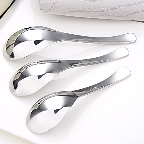 Cucchiaio da Zuppa in Acciaio Inox, 4 Pezzi Cinese Giapponese in Cucchiai Ramen con Bordo Arrotondato - 15 mm e 14 mm