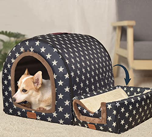 Casa per cani 2 in 1 Extra Lagre: realizzata in resistente tessuto Oxford impermeabile e all'interno con imbottitura in schiuma solida, per evitare graffi dal tuo cucciolo. Ultra morbide e accoglienti, calde e confortevoli, queste case per cani e gatti interni danno al tuo animale domestico la propria stanza privata con un tetto pieghevole, basta spingerlo verso il basso per cambiare il tetto e il tuo animale domestico penserà che il divano letto sia perfetto!
