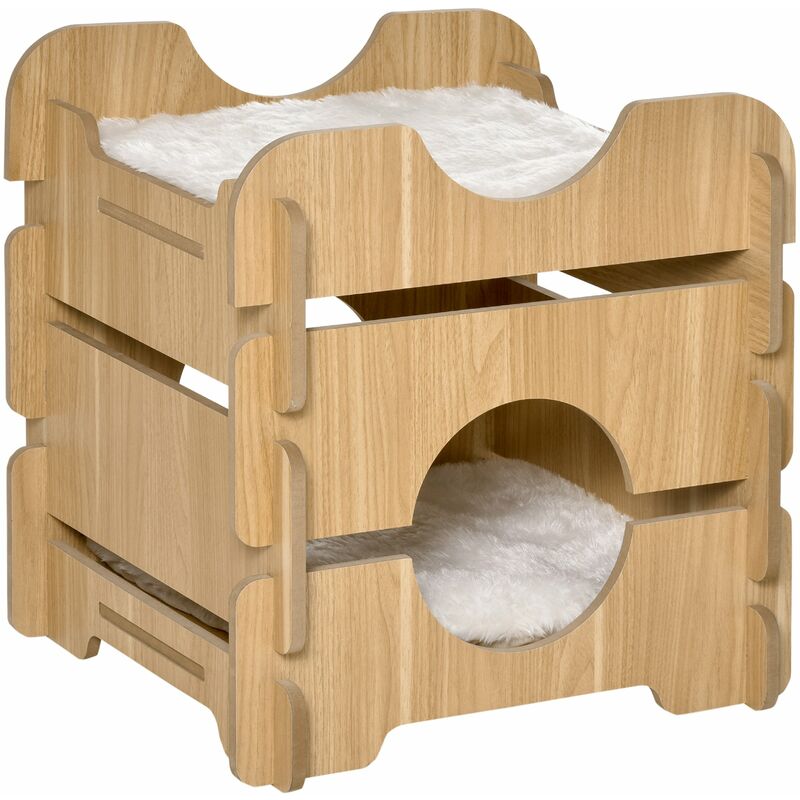 Cuccia Cuccia per Gatti 50x50x50 cm 2 Piani con Cuscini in Legno Rovere Offri al tuo migliore amico una comoda cuccia per gatti su cui rilassarsi dopo una lunga giornata passata a giocare, saltare e a preparare nuovi agguati. Questa cuccia ha un design elegante e resistente, ed è realizzata in tessuto e pannelli PB. Include un comodo cuscino, ideale per schiacciare un pisolino durante le giornate più fredde. CUCCIA PER GATTI A 2 LIVELLI: Il luogo giusto per schiacciare un pisolino dopo una lunga giornata. La cuccia ha due porte d'accesso, una frontale e una posteriore, per entrare e uscire comodamente. CUSCINI RIMOVIBILI: Il lettino per gatti è dotato di 2 cuscini in peluche, entrambi rimovibili e lavabili. SOLIDA E RESISTENTE: Costruita in pannelli PB a incastro, è facile da assemblare e ti garantisce massima stabilità. LOOK MINIMAL: Questa cuccia per gatti ha un design elegante e sobrio, per integrarsi alla perfezione con l'arredo del tuo salotto. DIMENSIONI: Dimensione complessiva