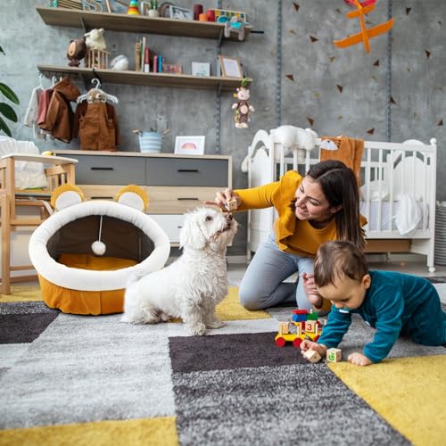 Cuccia per gatti Cuccia Gatto con cuscino rimovibile e lavabile Letto per Gatti per Interni con Anti scivolo Cuccia da interni Letto Grotta Per Gatti Letto in Peluche (Taglia M,Orso)