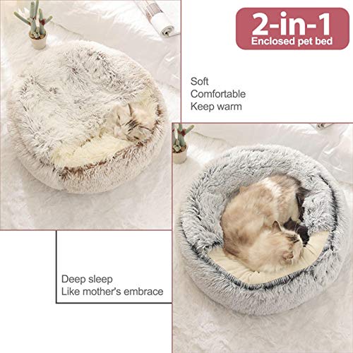 Cuccia per Gatti Rotonda con Copertina Nido di Peluche Semichiusa, Coperta Calda per Letto A Grotta per Gatti, Letto Calmante per Gatti per Cani di Piccola Taglia, Cuccioli, Gattini40x50cm