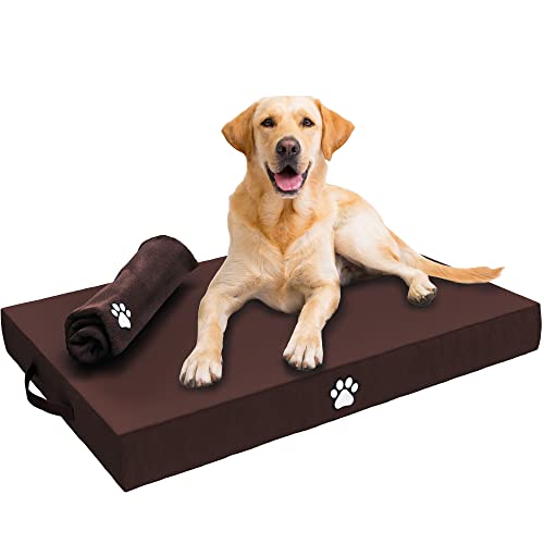 Cuccia Cane Interno Taglia Grande e Coperta per Cani Marrone -(100x60x10) Cuscino Cane Grande Sfoderabile e lavabile - Pack Materassino per Cani Taglia Grande e Taglia Media con Coperte Cani (Marrone)