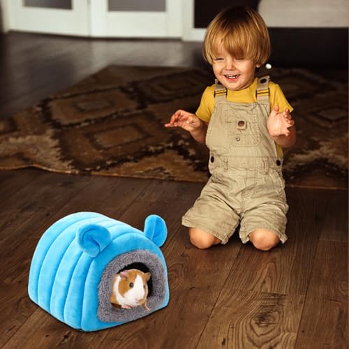 Cuccia letto per porcellini d'India Grotta accogliente per criceti Casa per porcellini d'India con cuscinetto mobile per animali di piccole dimensioni,cincillà,drago barbuto,furetto,riccio (Blu)
