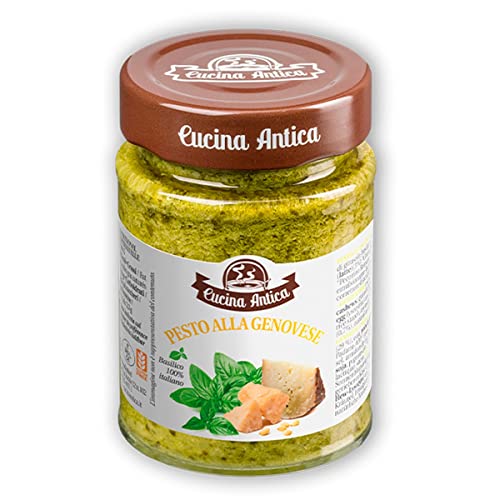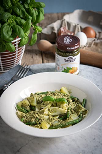 QUALITÀ: la nostra ricetta viene preparata partendo da basilico fresco 100% italiano, aglio, anacardi e pinoli, conditi con Grana Padano D.O.P. ed olio.
