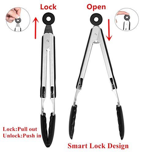 Cucina Cucinare pinze per Alimenti, 100% Acciaio Inox Premium per Cucina, Cucina, Barbecue, Insalata, Cibo servito - Design Unico con Piedini di appoggio, più igienico, Pulizia Facile, 9 "