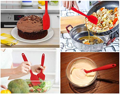 Set di 6 set da cucina in silicone inclusi pennello, cucchiaio, spatola, antiaderenti e resistenti al calore, spatola in silicone per cottura e cottura, lavastoviglie adatta (rosso)
