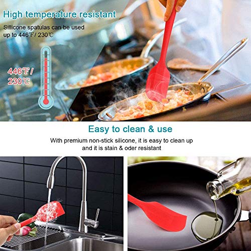 ✔ Alta resistenza al calore - Spatola in silicone completamente priva di BPA e lattice. Questi utensili da cucina resistenti al calore possono essere utilizzati fino a 230 °C, la temperatura massima della frittura non supera i 200 °C. Sicuri per pentole rivestite e antiaderenti e perfetti per l'uso con cibi caldi e intorno al piano cottura.