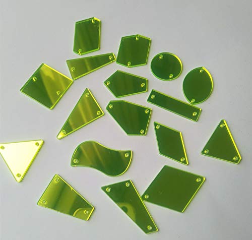 Cucire su specchio acrilico verde neon strass strass specchio perline cristallo retro piatto con foro per costumi fai da te abiti da sposa abbigliamento (verde fluo, forme miste)
