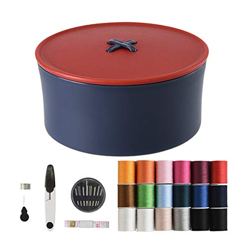 Kit da cucito, accessori da cucito con 18 bobine di filo e 1 confezione di aghi da cucito (numero 24) pratico mini utensile da viaggio per principianti, viaggiatori, parenti e amici (plastica blu)