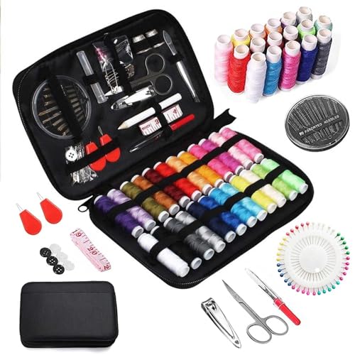 Kit da cucito, Set cucito con ago e filo, Accessori portatile kit cucire per principianti o viaggi (129 accessori per cucire)