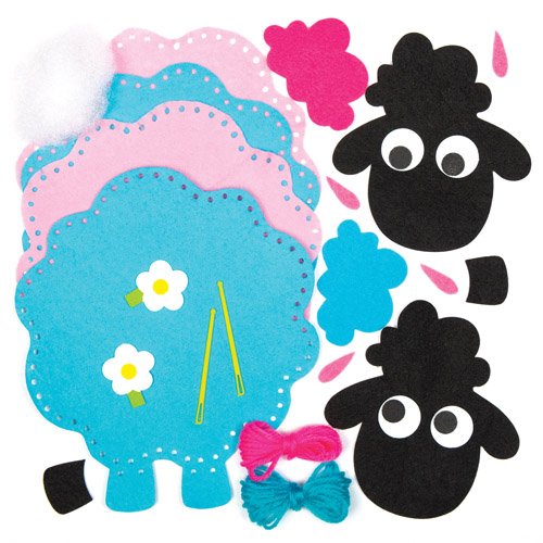Ciascun kit include sagome in feltro, pezzetti di feltro autoadesivi, ago di plastica, filo e imbottitura.