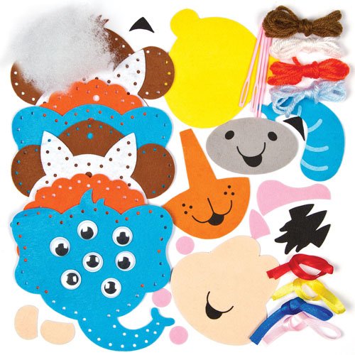 Ciascun kit include modelli in feltro, pezzetti di feltro, ago di plastica, filo, imbottitura e nastro.