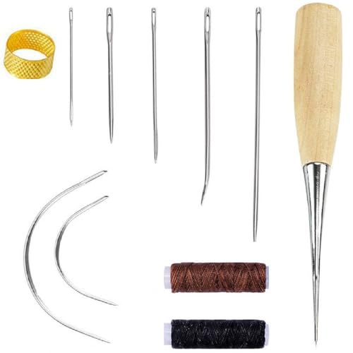 Ago da Cucito in Pelle,Aghi Per Cucire a Mano in Pelle,Aghi Curvi con Punteruolo di Cucitura,Set di Kit Pelle Attrezzi,Filo Cerato Kit Aghi da Cucito a Mano Per Cuoio in Pelle Lavorazione DIY,11 Pezzi