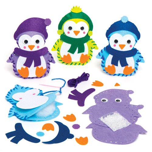 Kit da cucito per pupazzi imbottiti a forma di pinguini natalizi per bambini, da creare, decorare ed esporre a Natale - Giocattolo creativo fai da te per bambini e principianti (confezione da 3)