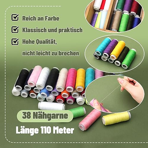 Set da cucito completo: questo set di accessori da cucito professionale contiene quasi tutti i tipi di accessori da cucito, filo da cucire*38, ago per disco, 24 ferri per perline a disco, 40 aghi per perline, 1 tampone per ago, 2 infila-ago, 2 ditali, separatore di cuciture, 1 bottone nero, 10 bottone bianco, 10 metro a nastro, forbici, 1 spilla di sicurezza. 20 aghi. .