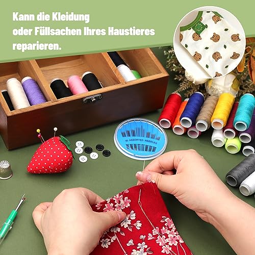 Materiale di alta qualità: il filo da cucito realizzato in poliestere al 100%, forte e durevole, non facile da indossare e adatto alla maggior parte delle macchine da cucire. L'interno del puntaspilli è realizzato in cotone, che è morbido e soffice per proteggere l'ago e può essere utilizzato a lungo.