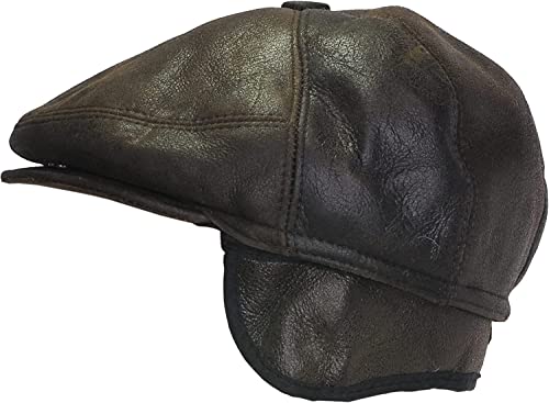 CUCUBA Coppola Cappello da Uomo in Pelle di Montone Shearling - Berretto con Visiera e Paraorecchie - Marrone Scuro (L)