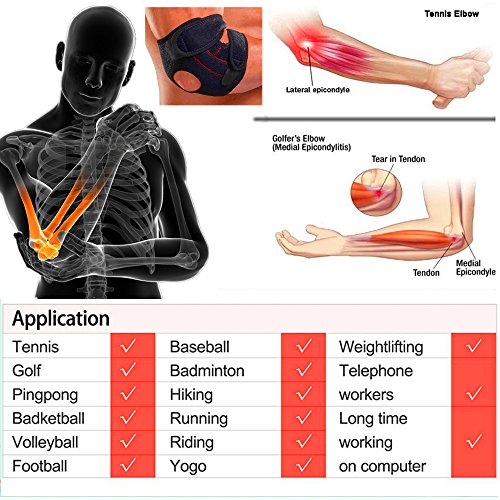 Altamente raccomandato! Rilasciare il dolore e il disagio della condizione laterale epicondilite. Applicabile a disagio comune / leggera contusione / distorsione / artrite / post-infortunio riabilitazione. Adatto per la cura quotidiana e vari sport come il golf, tennis, badminton, basket, arrampicata, ciclismo, ecc