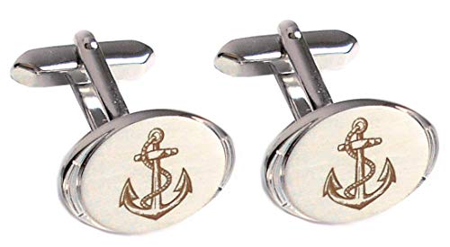 Cuff-Daddy - Gemelli a forma di ancora, ovali, in argento opaco, con incisione marrone e scatola argentata, Ottone, Senza pietra.